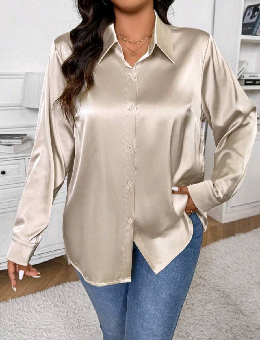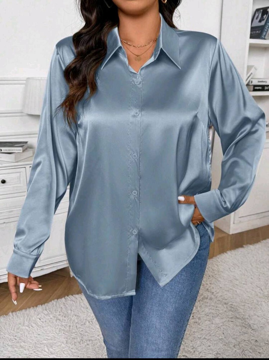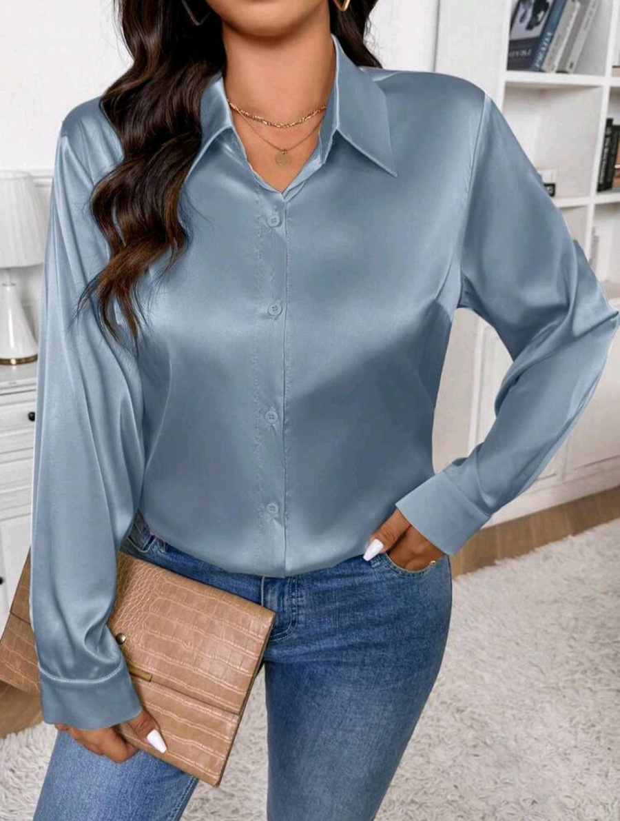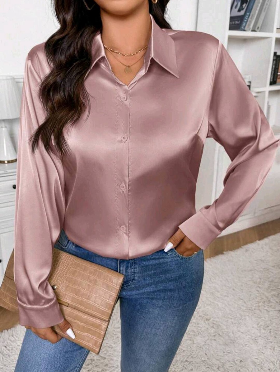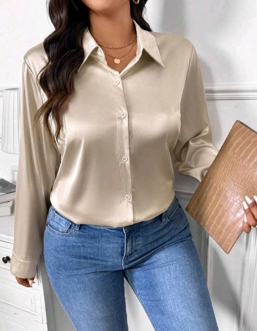 شيميز أنيق بخامة ستان أرماني مستورد بملمس ناعم ولمعة راقية تضيف لمسة فخامة لإطلالتك، سواء للشغل أو الخروجات الكاجوال.
